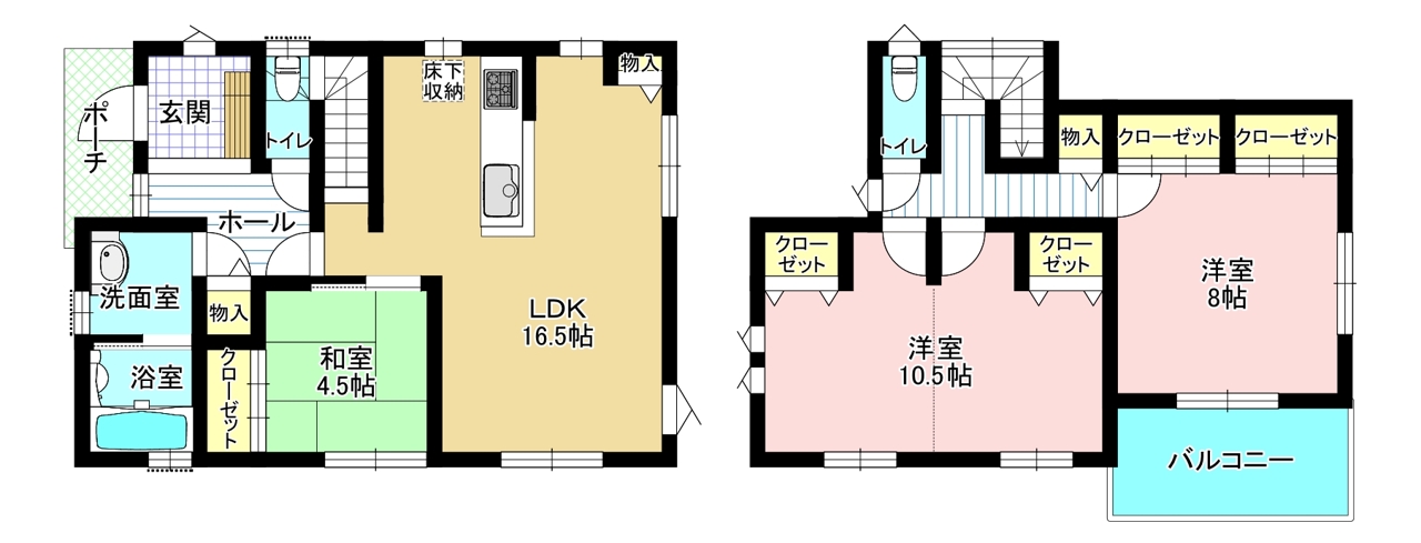 整形地平坦地閑静な住宅地LDK15帖以上床下収納全居室収納ワイドバルコニー食器洗浄機システムキッチンカウンターキッチン3口以上コンロトイレ2ヶ所温水洗浄便座浴室乾燥機追焚機能浴室1坪以上浴室に窓リビング階段小学校800m以内陽当り良好通風良好