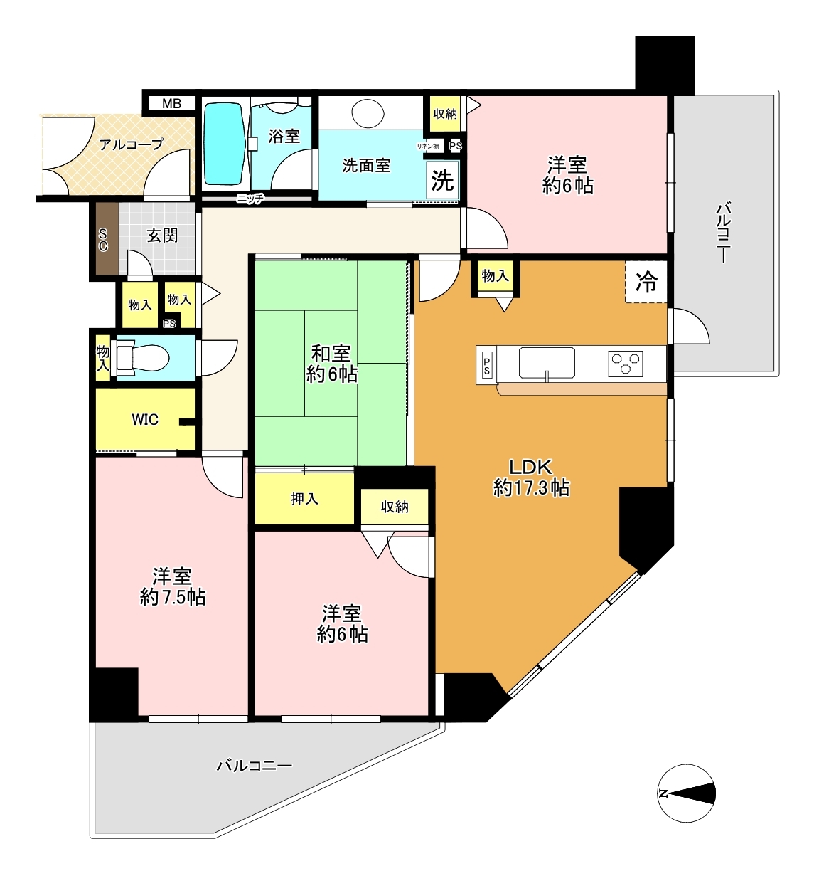 | バルコニー面積 | 16.94m² 南向き | ||