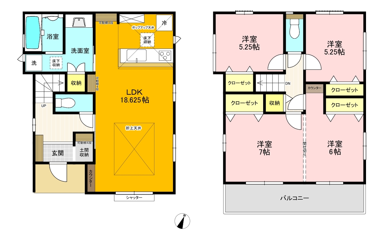 ☆2階に間仕切りして(有償)2部屋にする事が出来る部屋があります